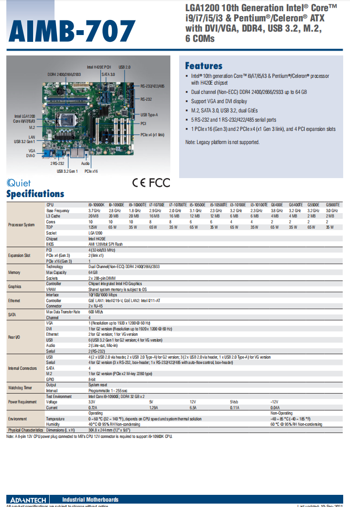 1、Intel® 10th generation Core™ i9/i7/i5/i3 & Pentium®/Celeron® processor