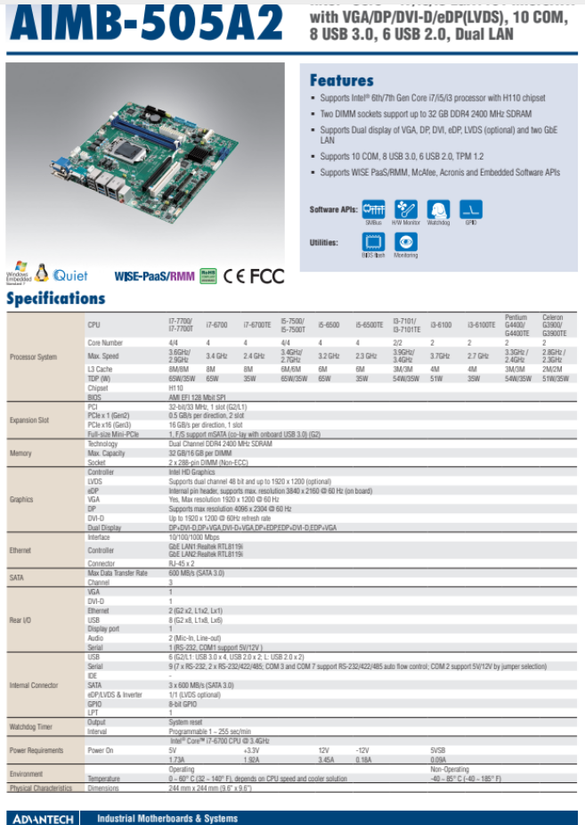 1、Supports Intel® 6th/7th Gen Core i7/i5/i3 processor with H110 chipset