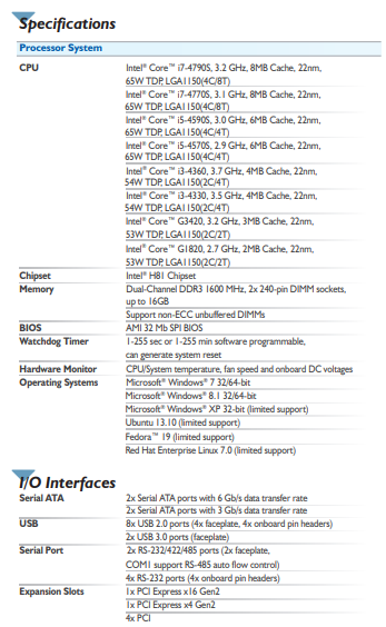 1、第四代Intel® Core™ i7/i5/i3/Pentium® /Celeron® 处理器