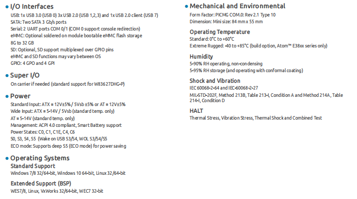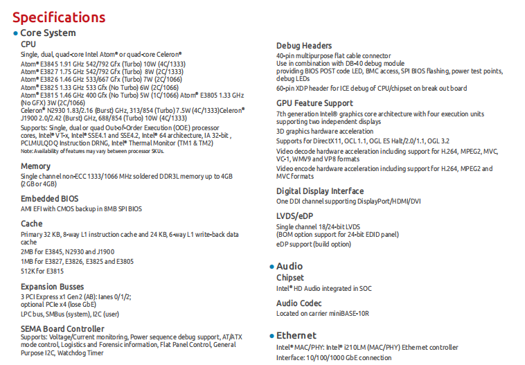 1、Single, dual, quad-core Intel Atom or Celeron Processor System-on-Chip