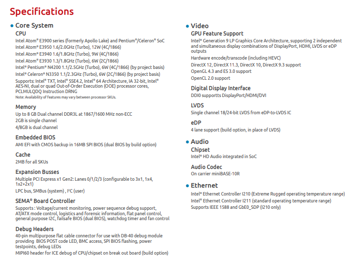 1、 Intel Atom® E3900 series (formerly Apollo Lake) andPentium®/Celeron® SoC, supporting full virtualization (VT-d/VT-x)