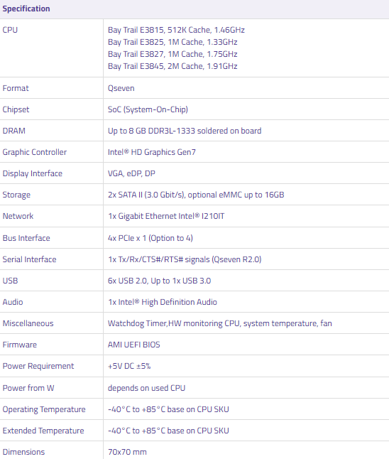 产品分类:CPU主板1、Intel® Atom™ Bay Trail SoC E3800 series processor with industrial support.2、On Board DDR3L DRAM and up to 8GB.3、Three PCI Express lanes (optional to Four)4、Support one USB 3.0, six USB 2.0