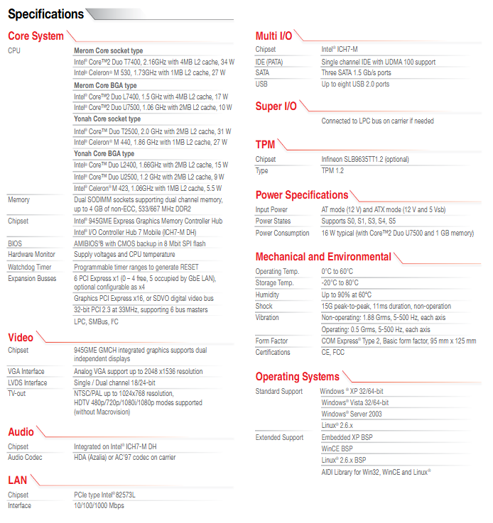 3、 Dual SODIMM for up to 4 GB DDR2 at 667 MHz