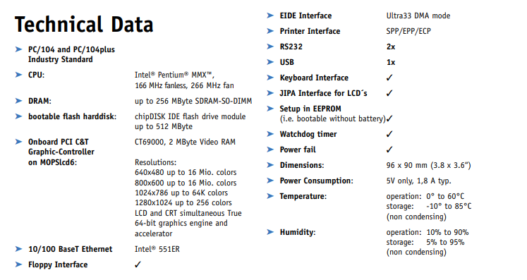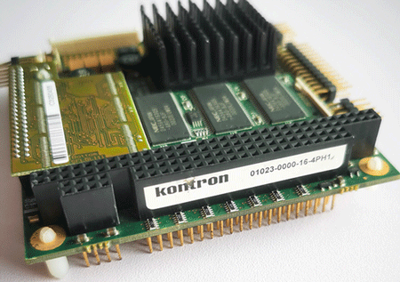 Kontron 01023-0000-16-4PH1 08001-0016-00-0 CPU Board. MOPS/686+ Intel Pentium 166MHz | Intel 559ER Ethernet | Fanless PC/104