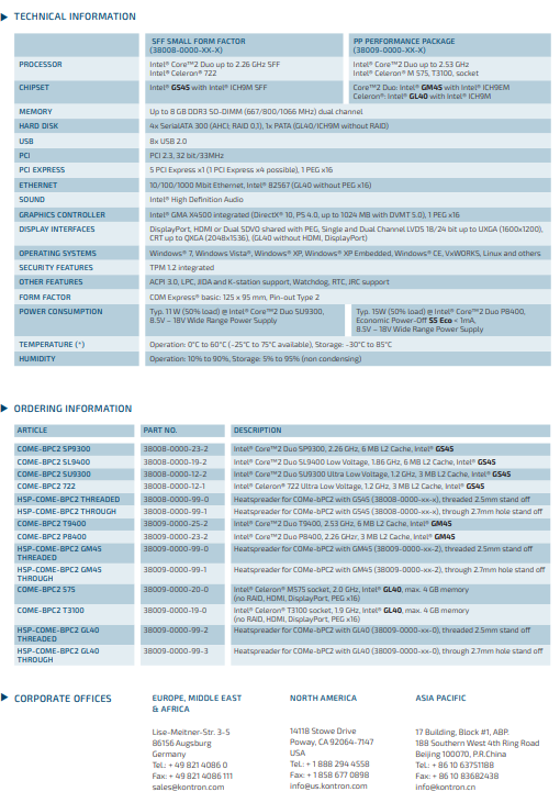 COMe-bPC2 Kontron 38003-0000-23-2 BWDOU0057 CNTGL111B TOP PERFORMANCE MODULE ON COM Express® BASICPIN-OUT TYPE 2