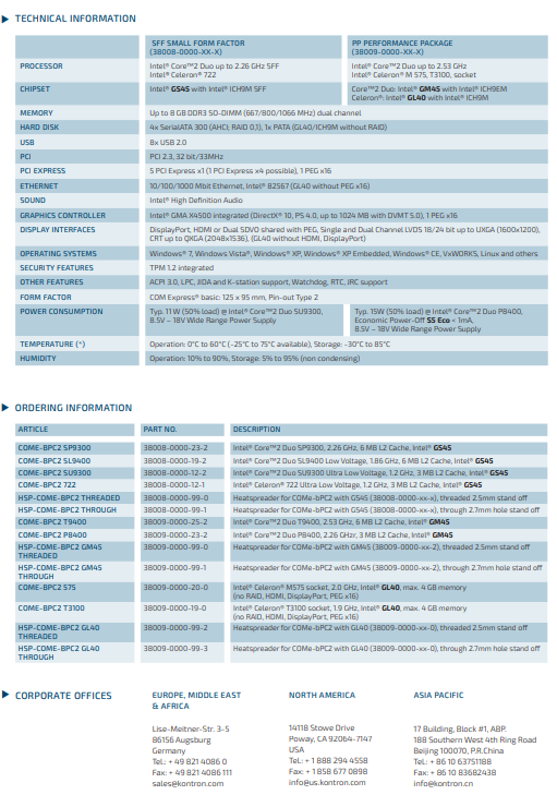 COMe-bPC2 Kontron 38009-0000-19-0 rev 0110 00003 BGD2K0011 PERFORMANCE MODULE ON COM Express® BASICPIN-OUT TYPE 2