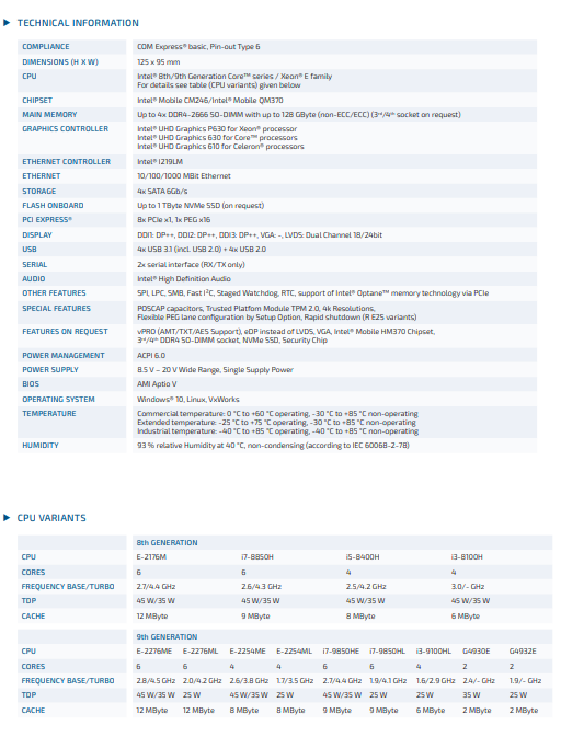 Kontron 38034-0000-27-7 REV 0102 000001 UQD7X0889 BCL6L110 TOP COM Express® Basic Type 6with 8th/9th Generation Intel® Core™ / Xeon® Processors