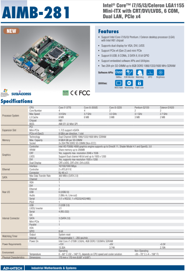 1、Support Intel Core i7/i5/i3/ Pentium / Celeron desktop processor (LGA)with Intel H61 chipset