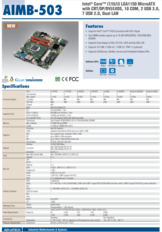 4、Supports 10 COM, 2 USB 3.0, 7 USB 2.0, TPM 1.2 (optional)