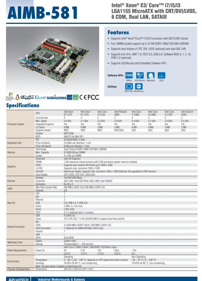 1、Supports Intel® Xeon®/Core™ i7/i5/i3 processor with Q67/C206 chipset