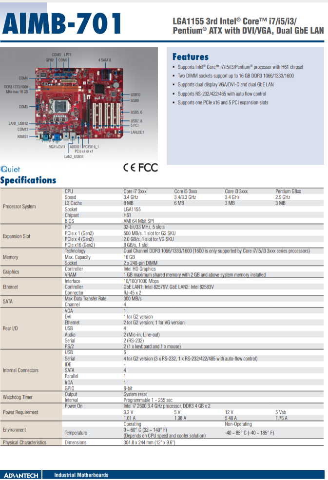 1、Supports Intel® Core™ i7/i5/i3/Pentium® processor with H61 chipset