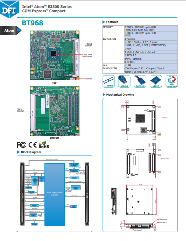 1、Dual Channel DDR3L 1333MHz SODIMM up to 8GB