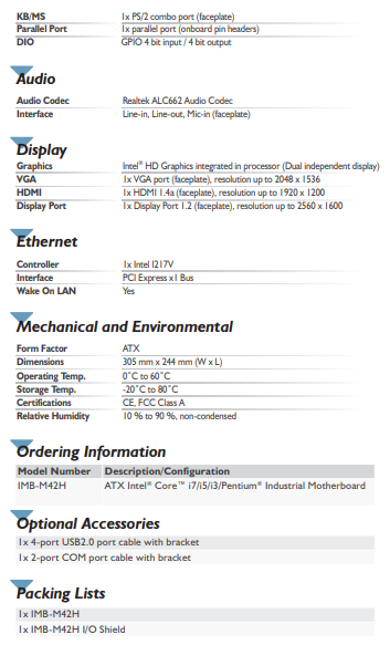 91-40202-000E IMB-M42H(ea).000E ATX工业母板,支持第四代 Intel® Core™ i7/i5/i3/Pentium® 处理器