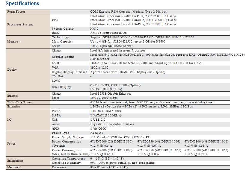 1、Embedded Intel® Atom™ Processor N2600/N2800/D2550 + NM10