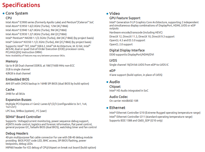 1、Intel Atom® E3900 Series, Pentium® and Celeron® SoC