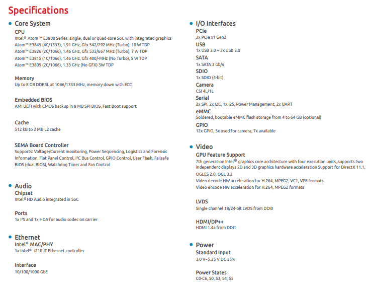 1、Single, dual or quad-core Intel® Atom™ Processor E3800 Series System-on-Chip