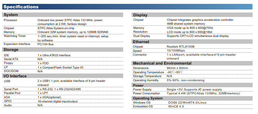 1、Onboard low power STPC Atlas SoC 133MHz Processor, 2.5W