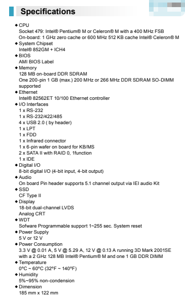 2. On-board 128MB DDR SDRAM and SO-DIMM DDR support up to 1GB